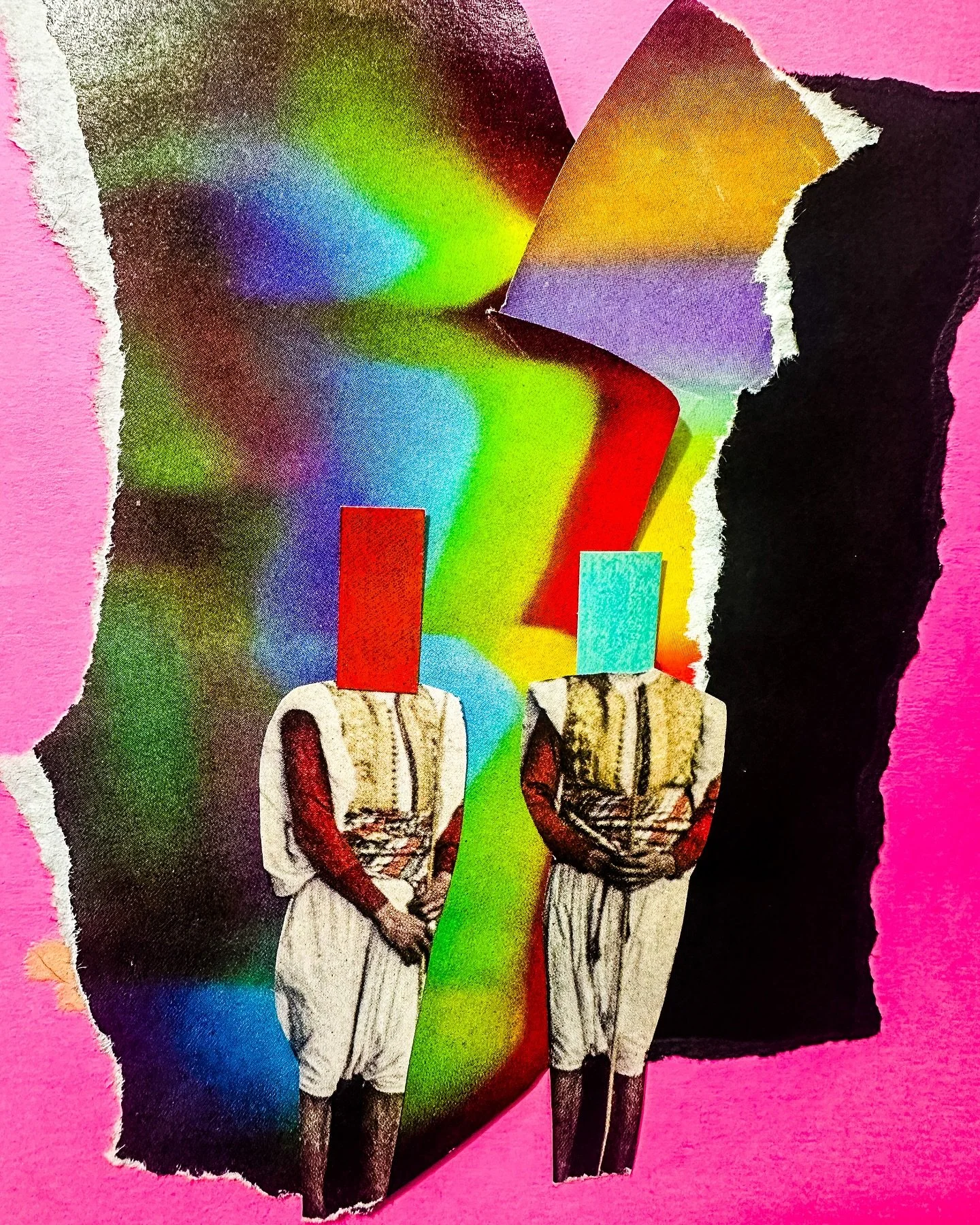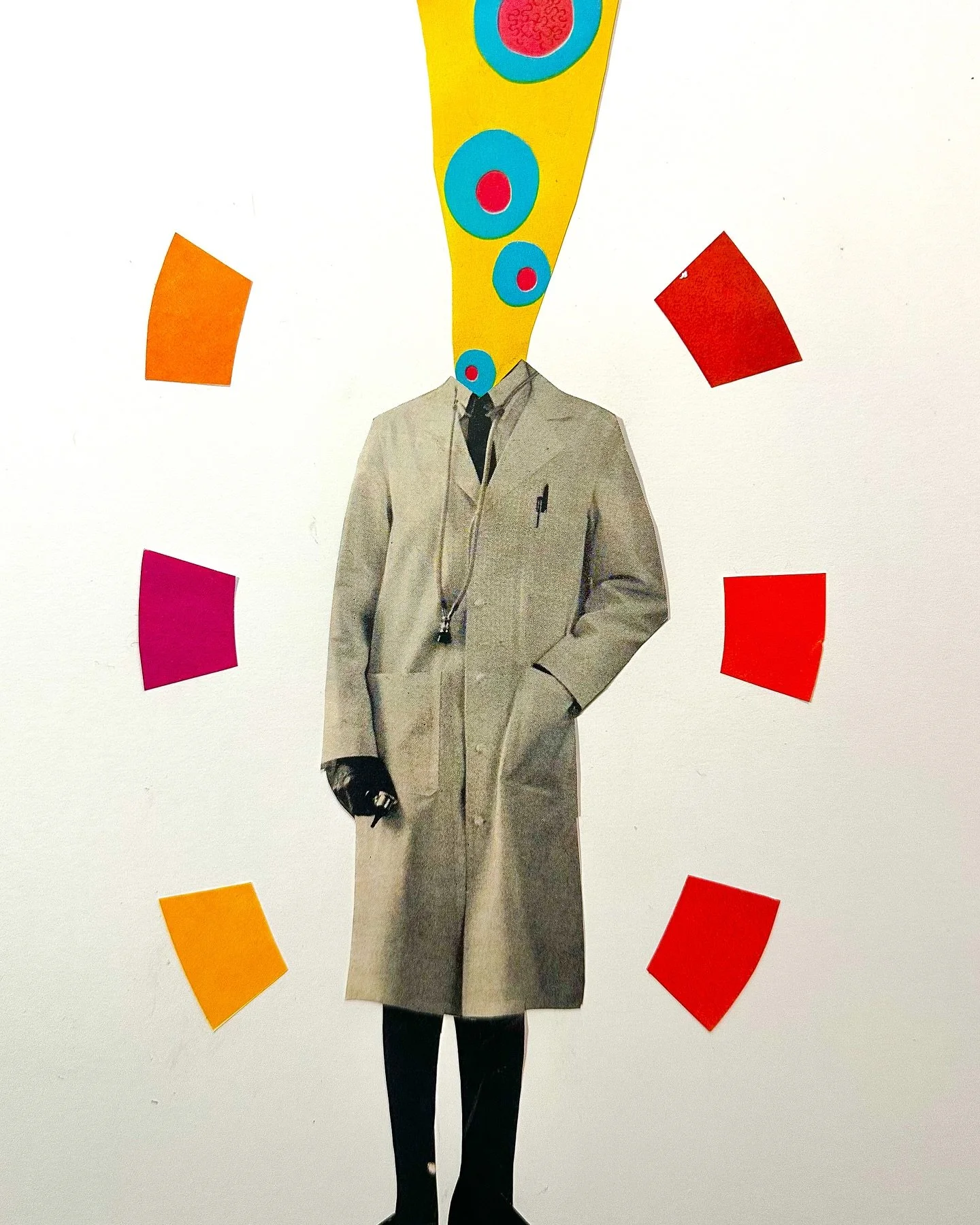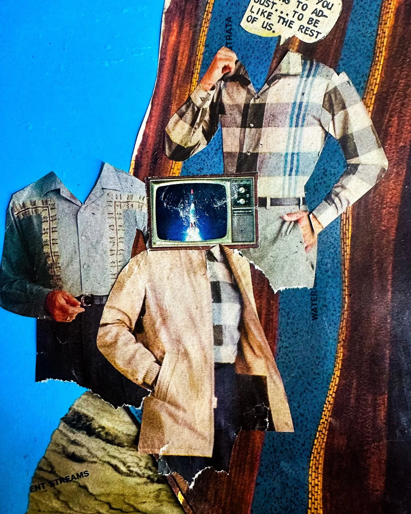 All of my collages are analog, or created by hand using images cut and pasted from vintage magazines and books, making every piece unique. My process is like me—random, messy, and motivated by questions about how the world works.