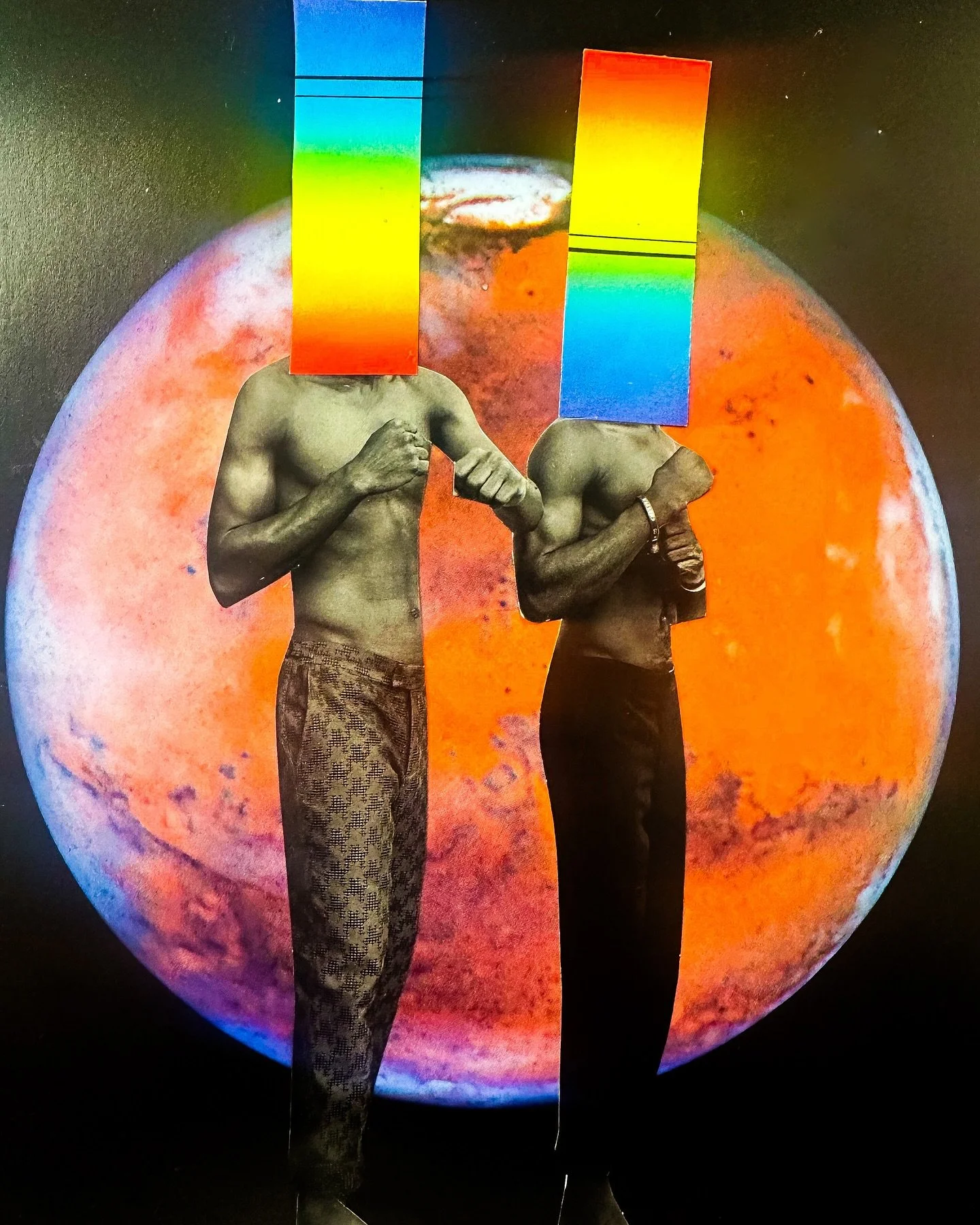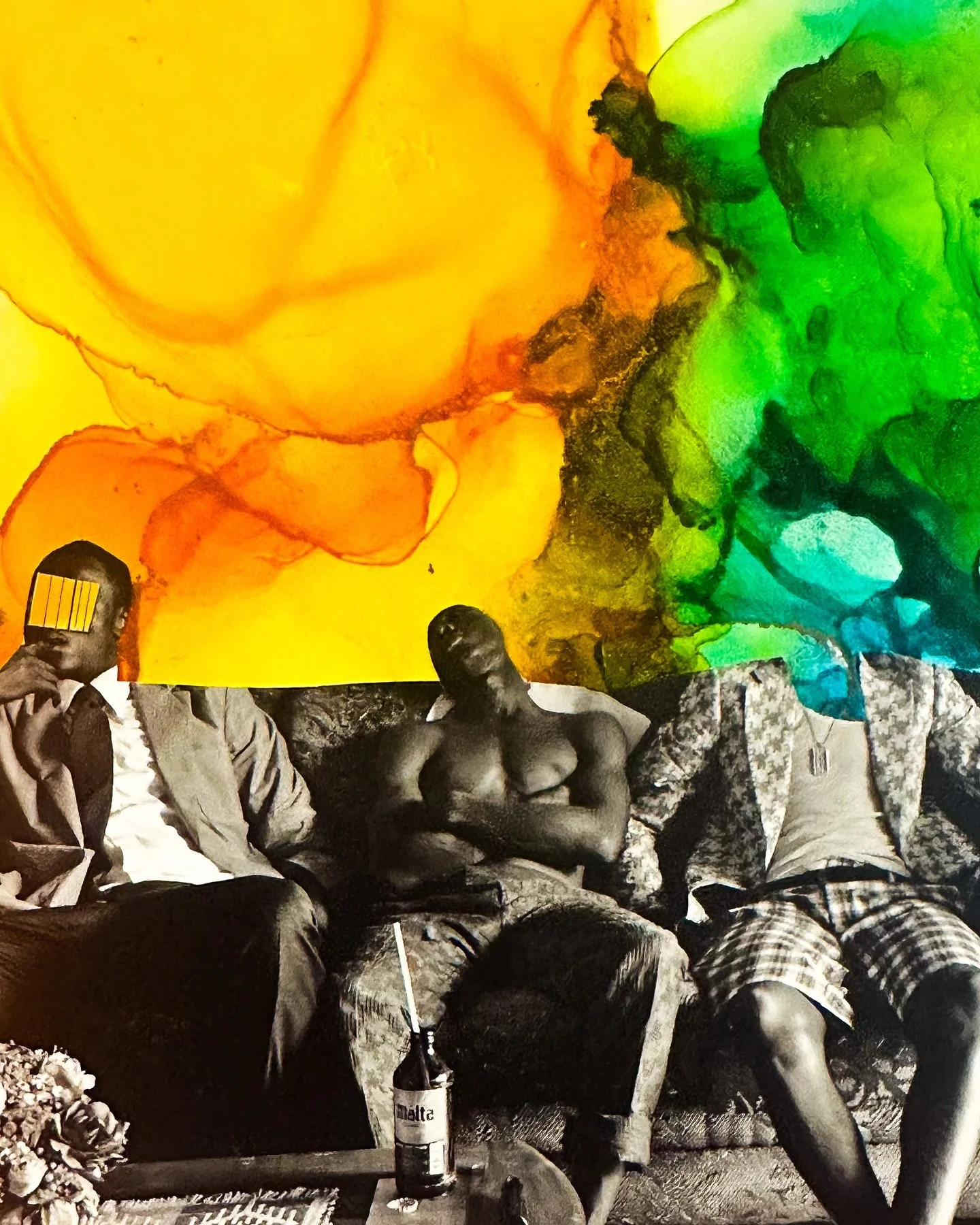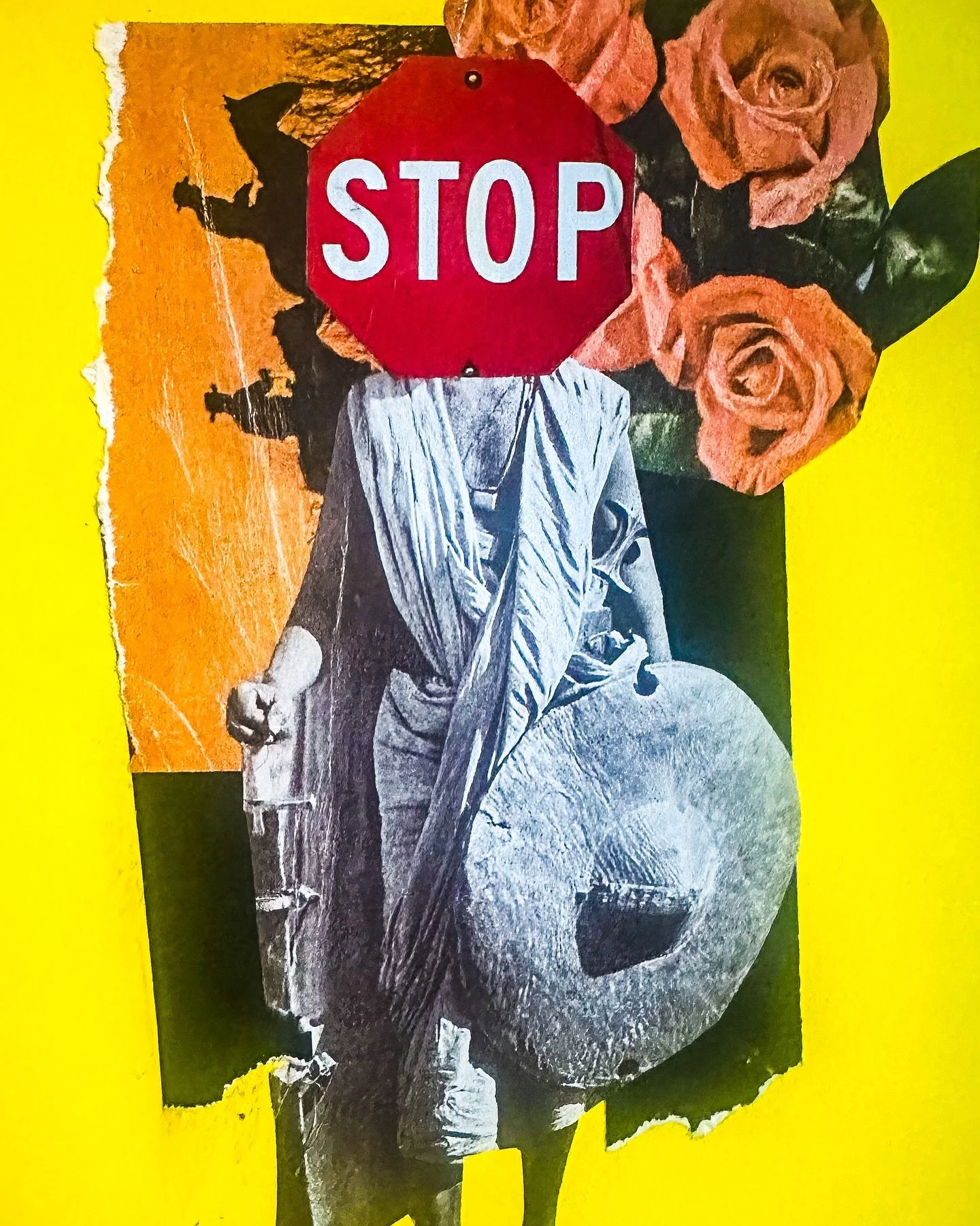 All of my collages are analog, or created by hand using images cut and pasted from vintage magazines and books, making every piece unique. My process is like me—random, messy, and motivated by questions about how the world works.